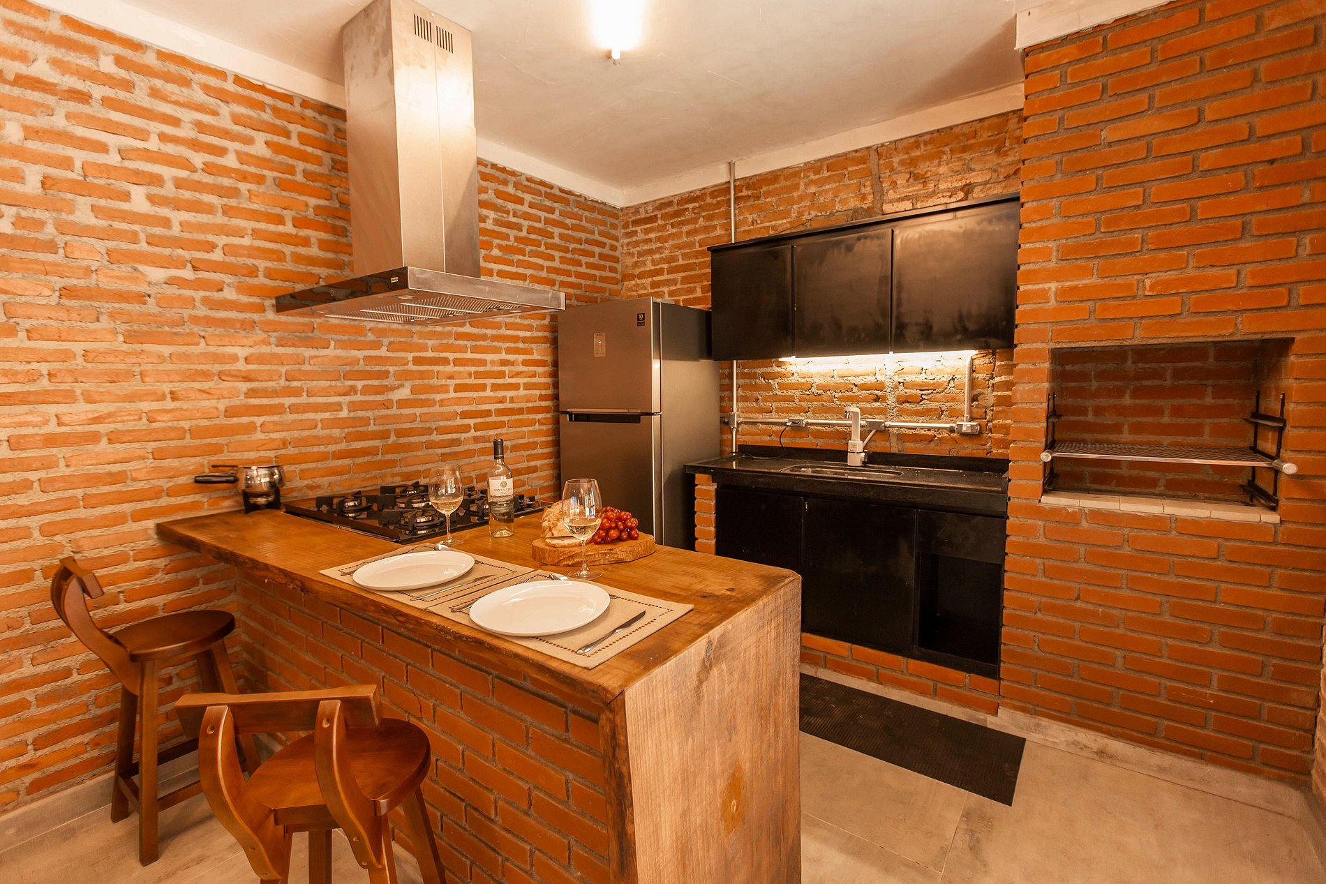 • Cozinha gourmet com geladeira, forno, fogão, churrasqueira;