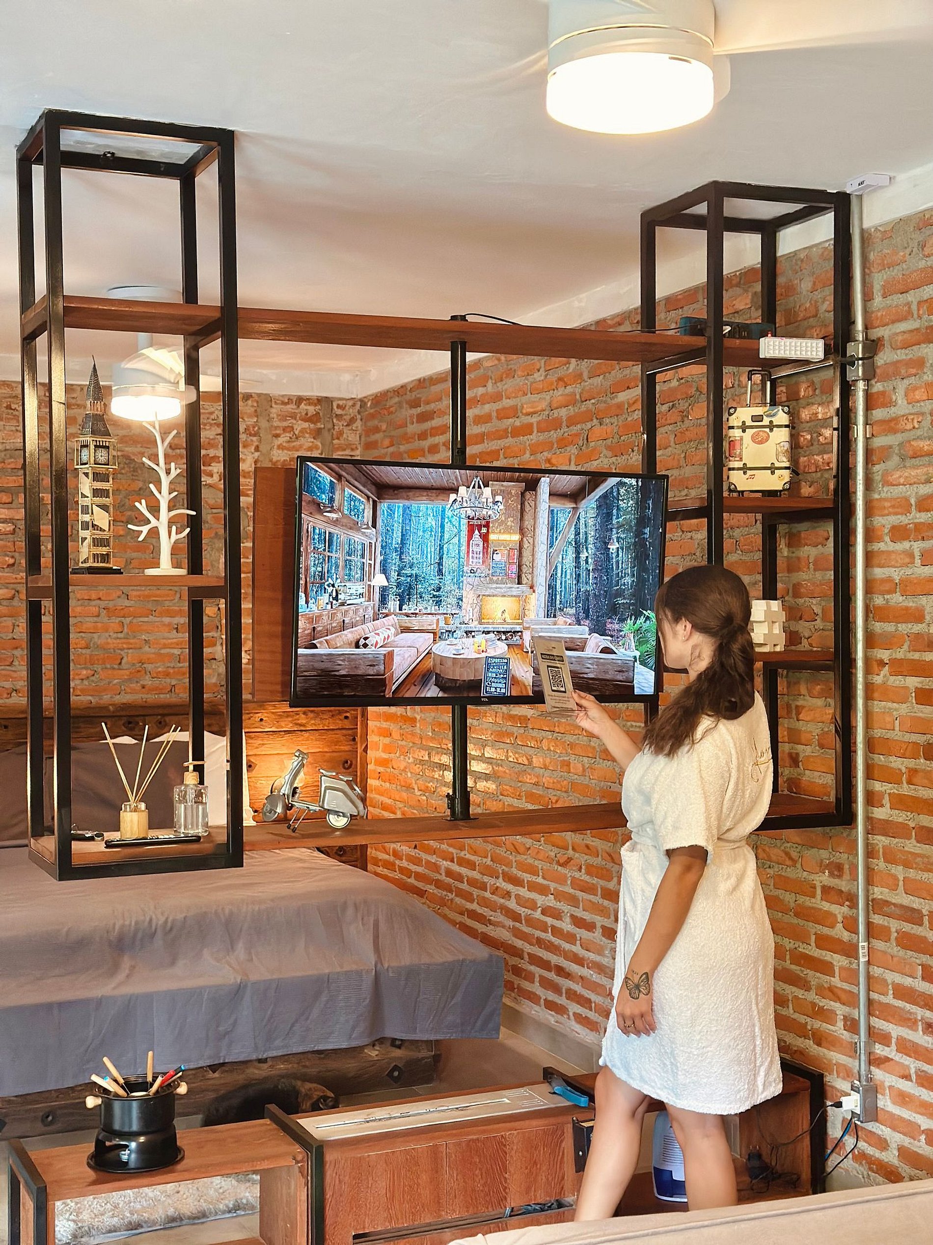 • TV tela plana 50 polegadas que gira para 2 ambientes.