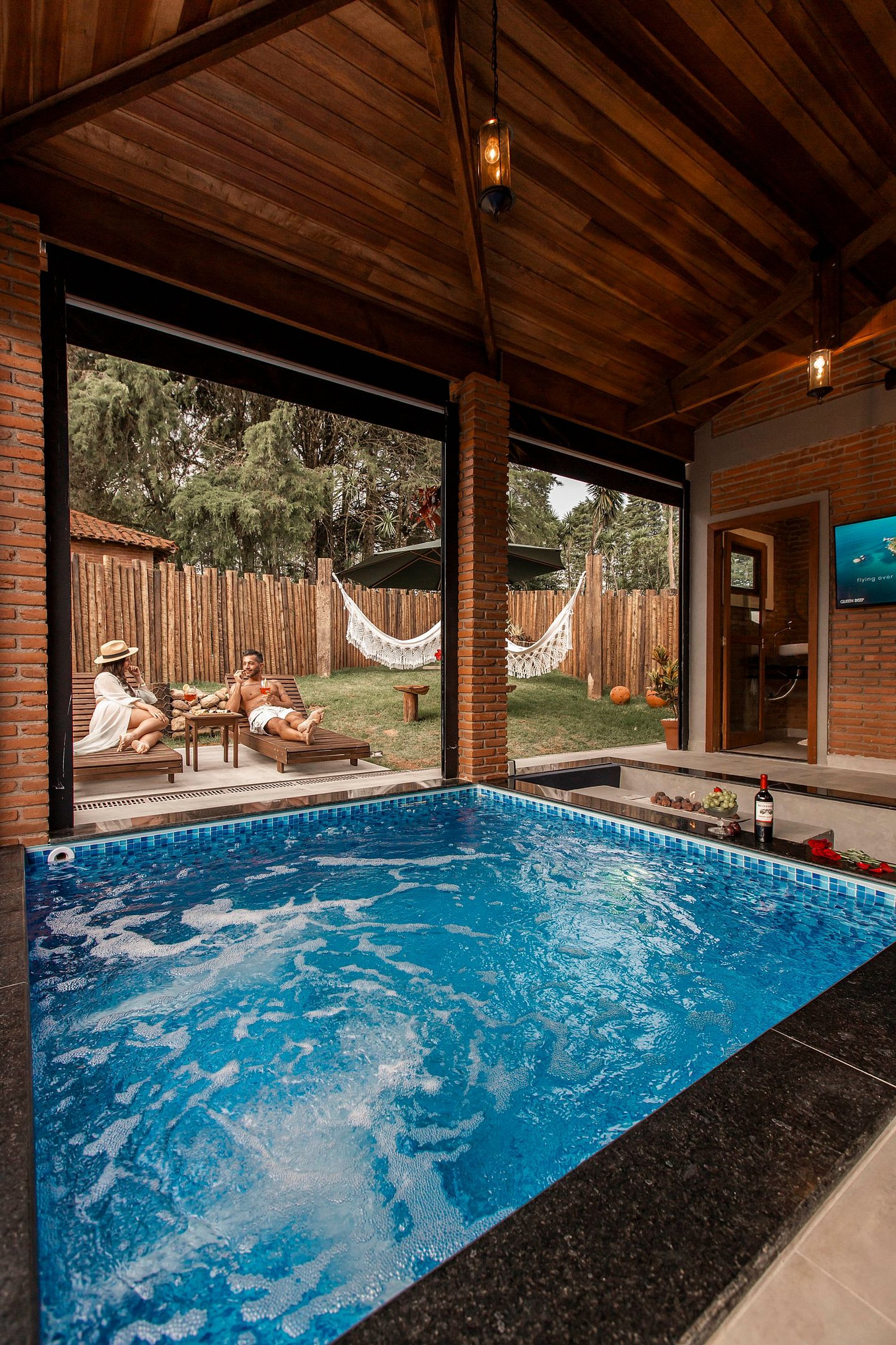 O Adorai Campo é uma das únicas propriedades que possuem piscinas aquecidas dentro do quarto no Brasil. Os chalés oferecem um ambiente acolhedor e privativo, perfeito para celebrar momentos especiais com quem você ama.