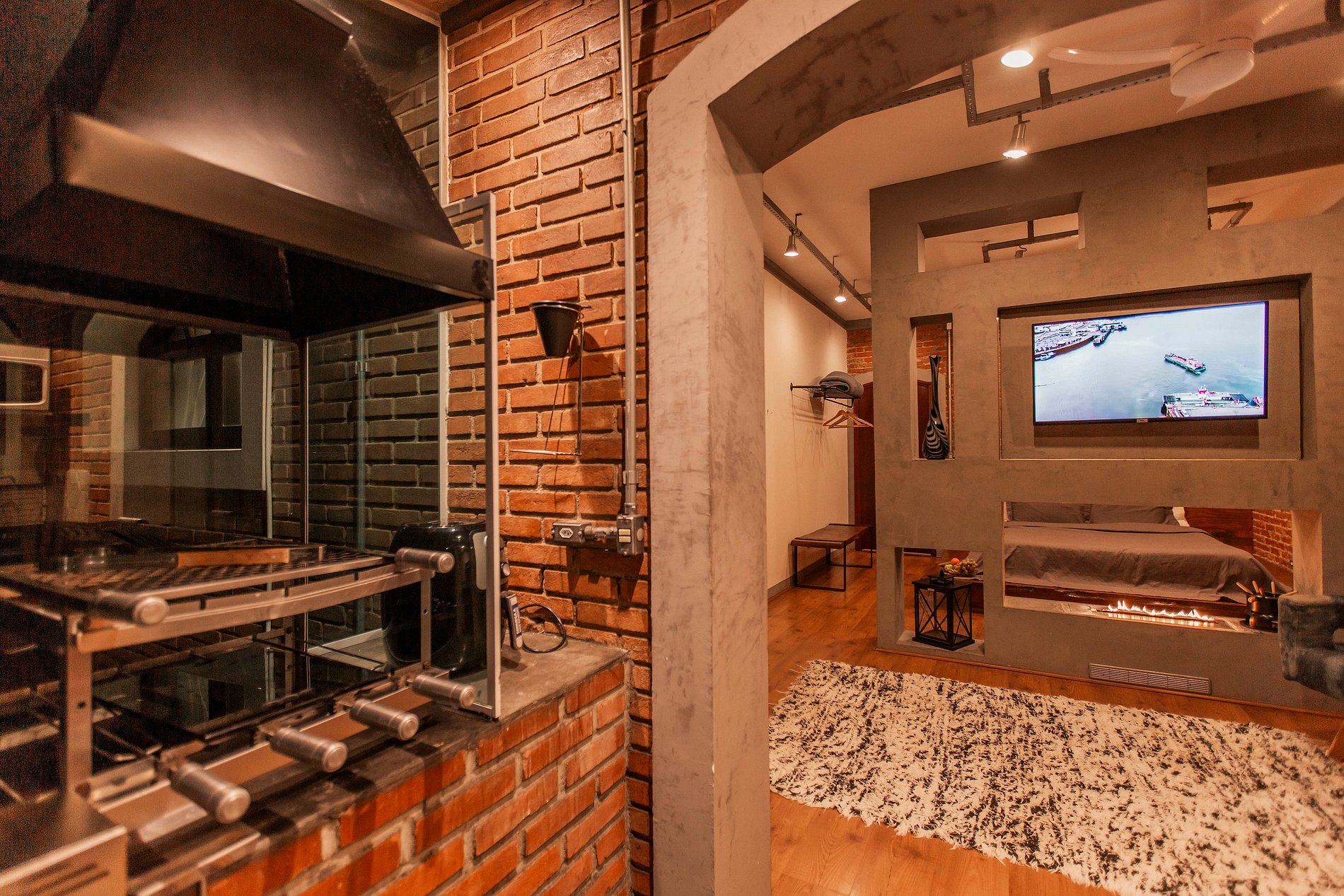 • Mini cozinha americana com cooktop, frigobar, microondas;