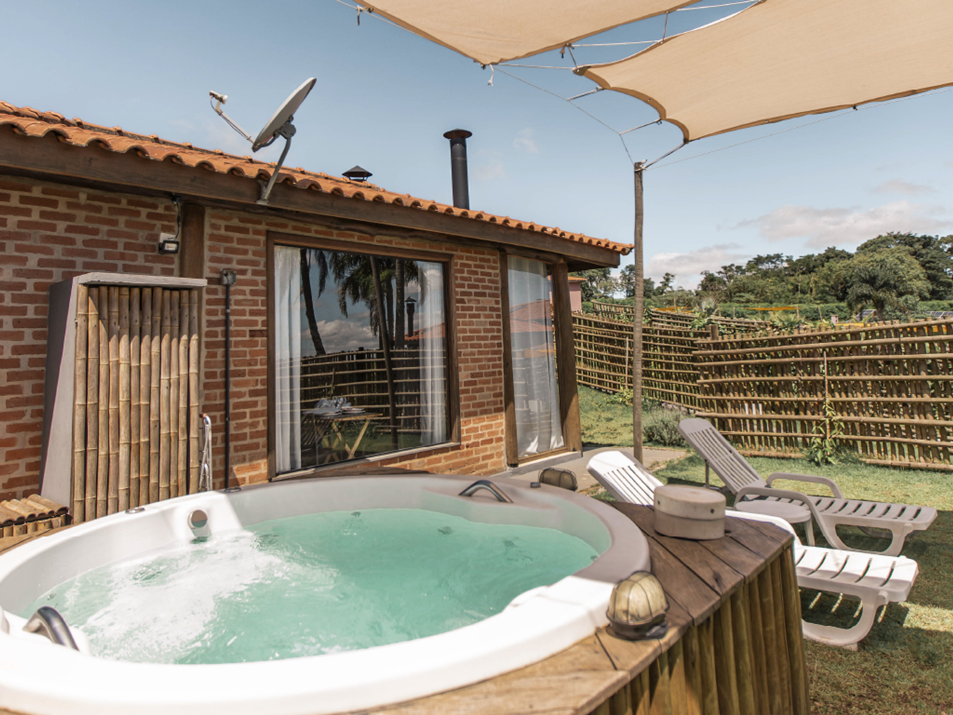 Relaxe na jacuzzi/ofurô ao ar livre e aproveite o aconchego da lareira para aquecer as noites mais frias.