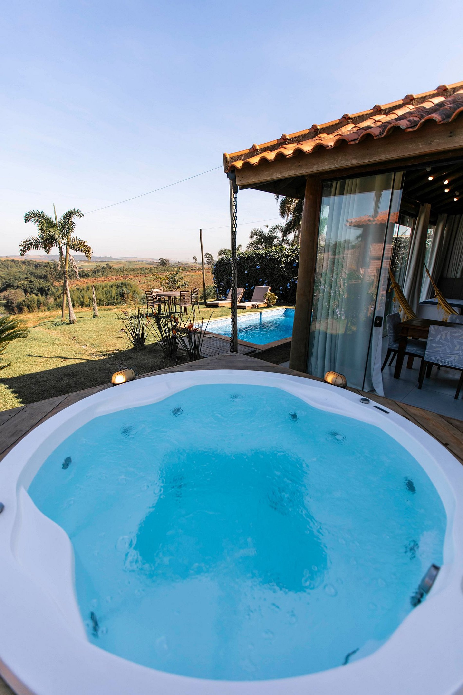 • Piscina exclusiva e jacuzzi/ofurô ao ar livre na área externa;