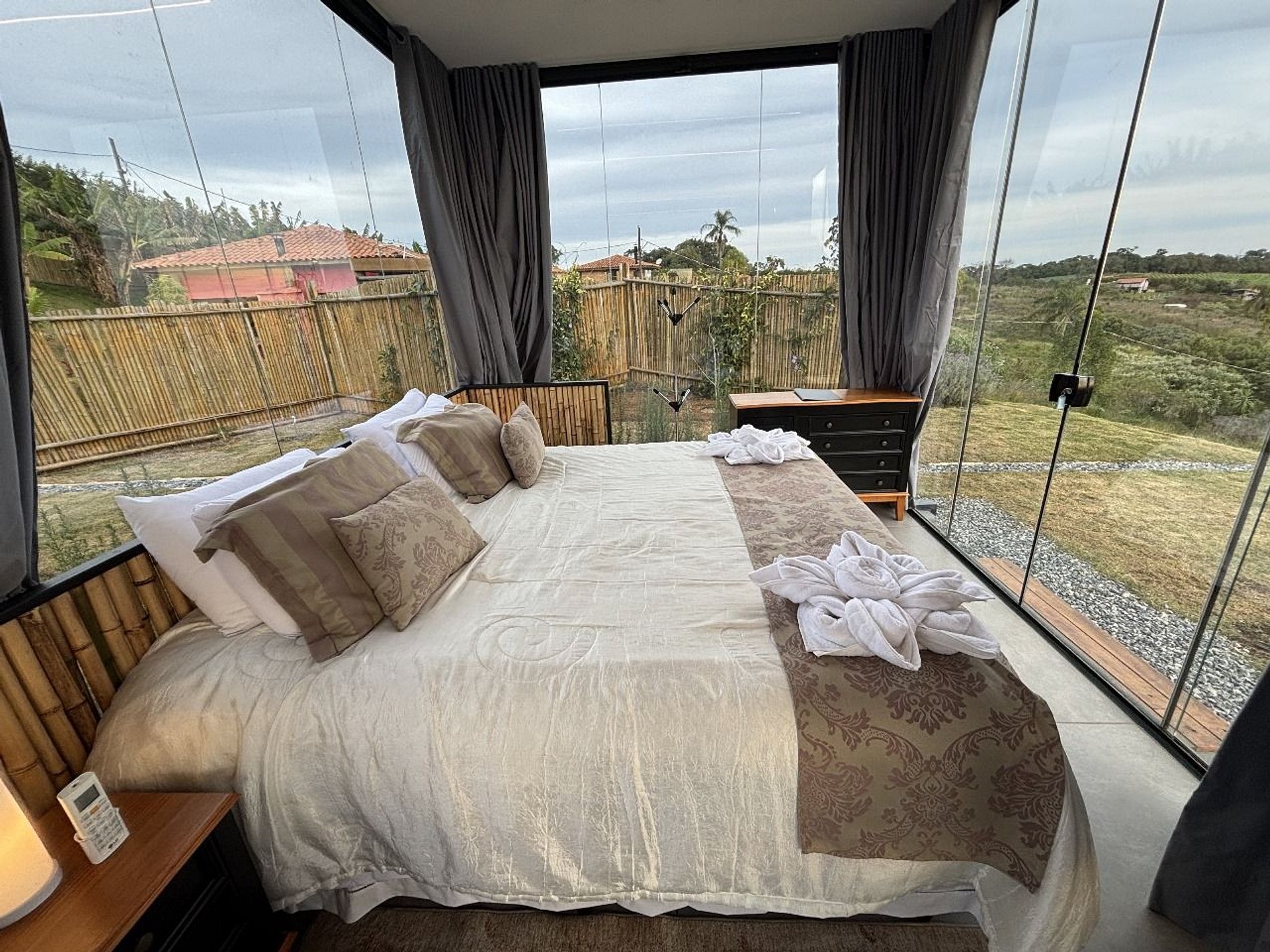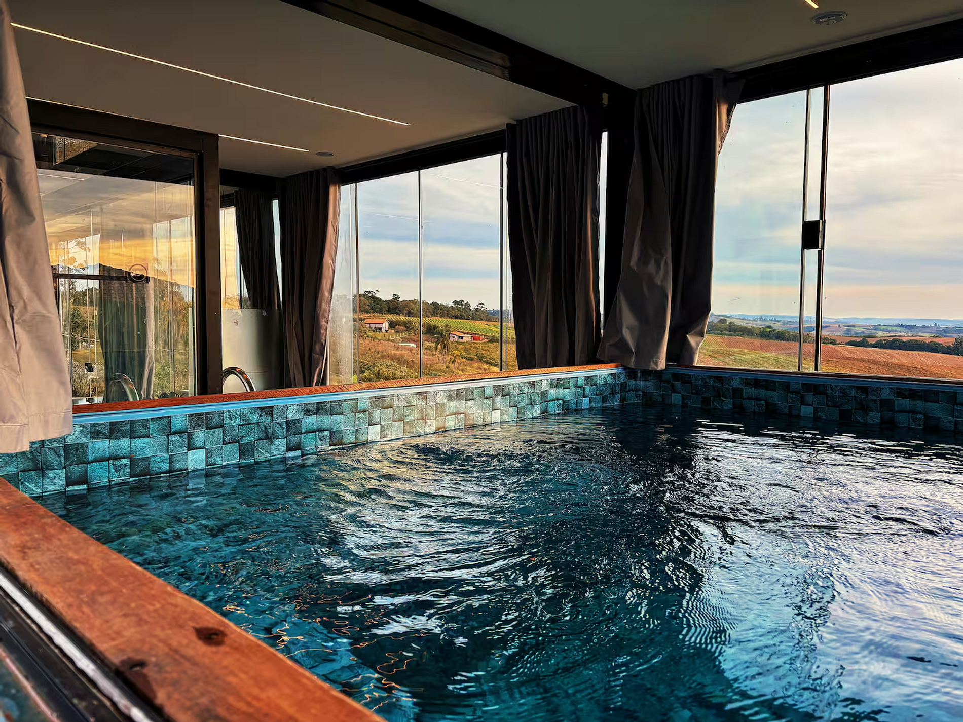 Imagine-se cercado por vidro em 360°, onde o jardim e a vista deslumbrante da montanha se tornam parte da decoração.