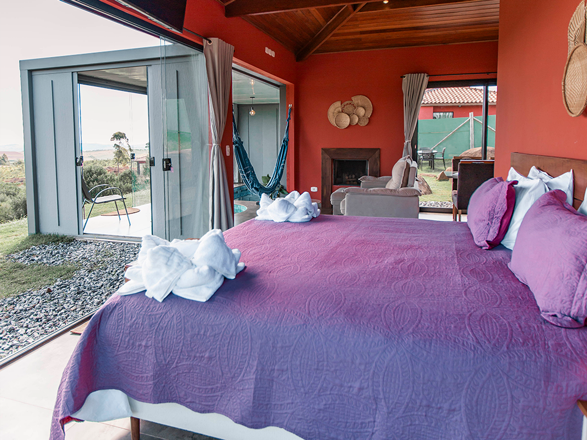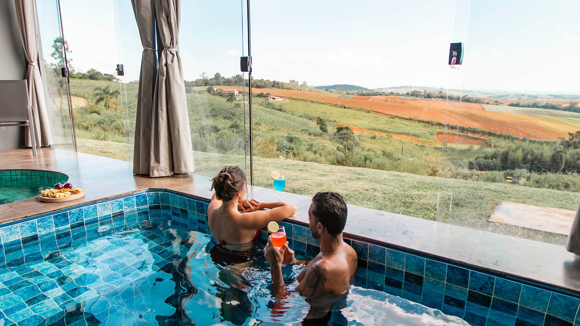 Com vista deslumbrante para o pôr do sol, o chalé conta com piscina interna, jacuzzi, além de cozinha gourmet com churrasqueira.