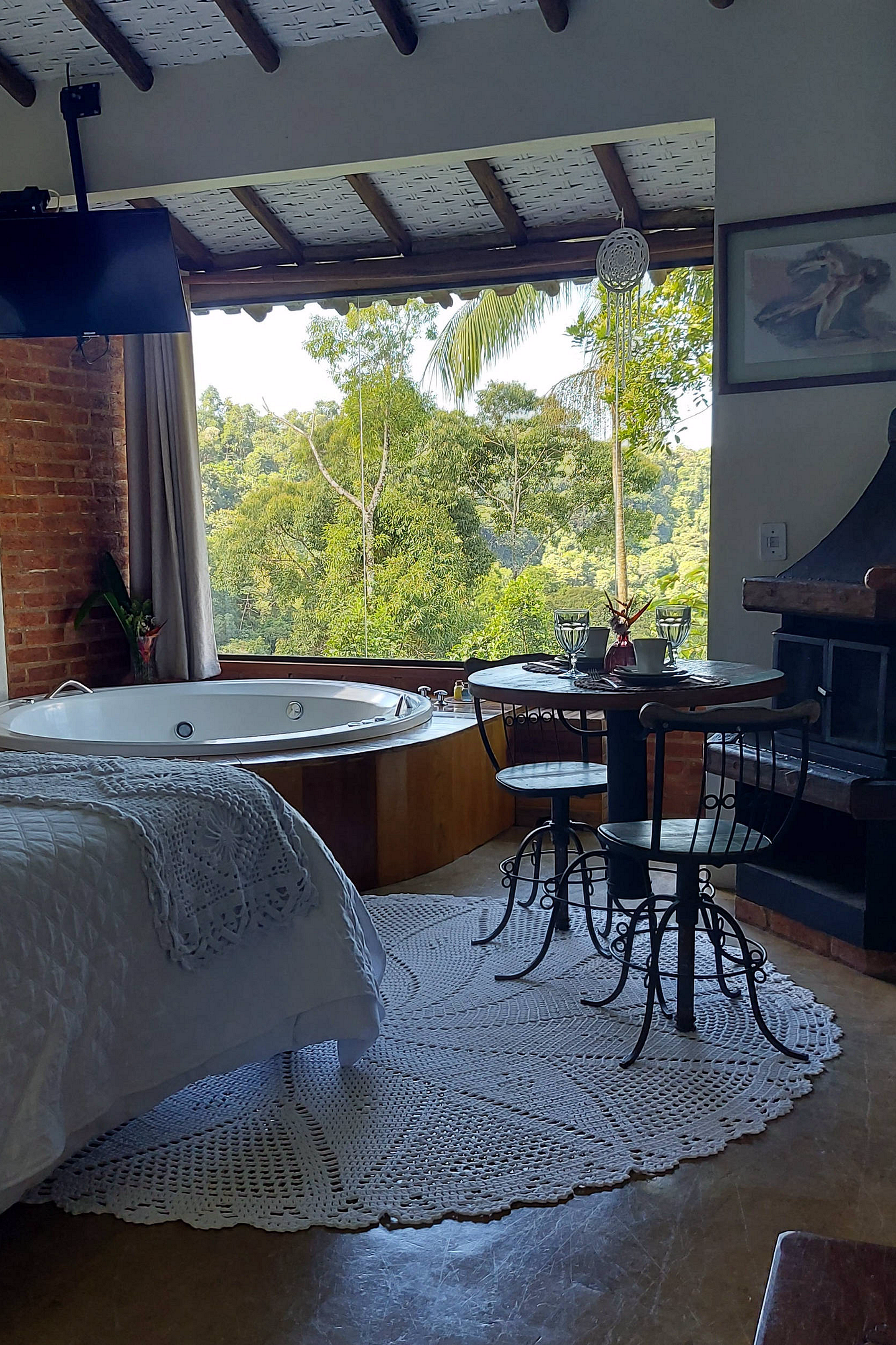 Localizado no Parque Nacional da Serra da Bocaina, a apenas 15 minutos do centro histórico de Paraty, o chalé fica em meio a um cenário deslumbrante. Entre o mar e as montanhas.