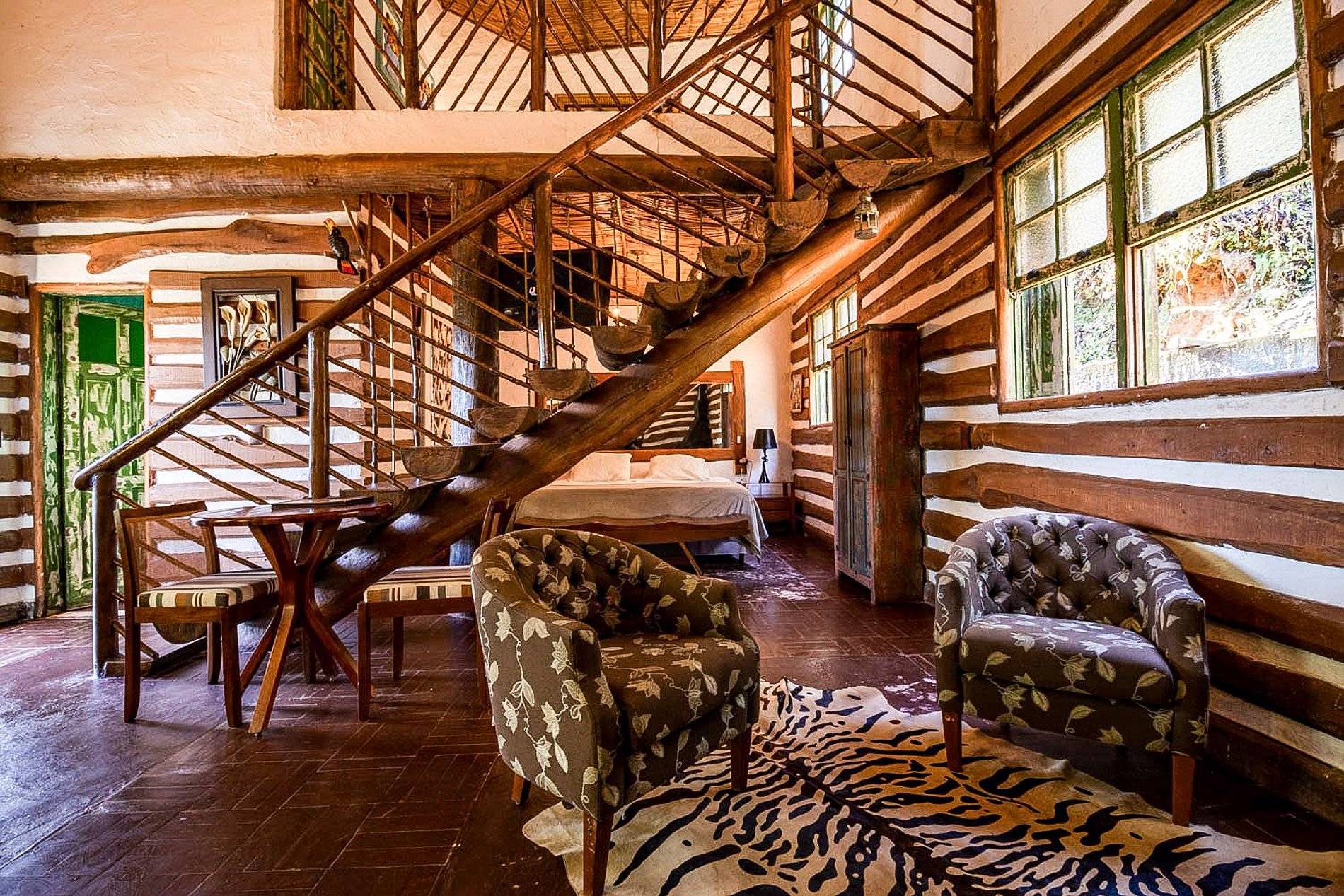 Quarto ideal para toda a família, com mezanino e vista para a mata, oferecendo mais espaço, conforto e integração com a natureza.