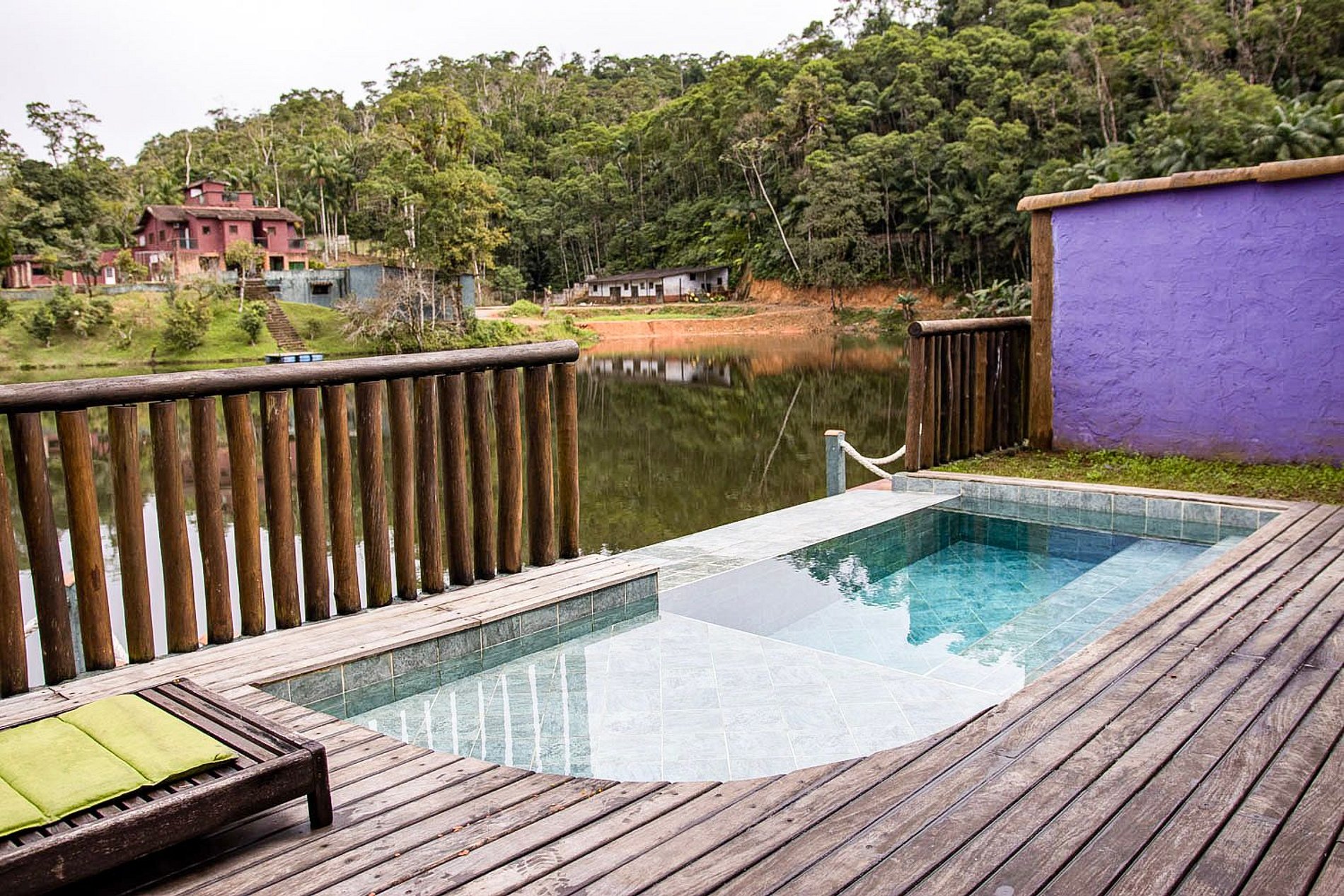 Acomodação confortável e funcional, ideal para quem busca contato com a natureza sem abrir mão do conforto. Conta com ofurô, lareira, fogareiro e deck privativo com piscina com vista para o lago.