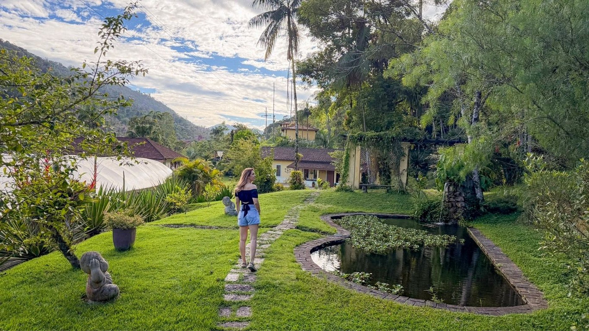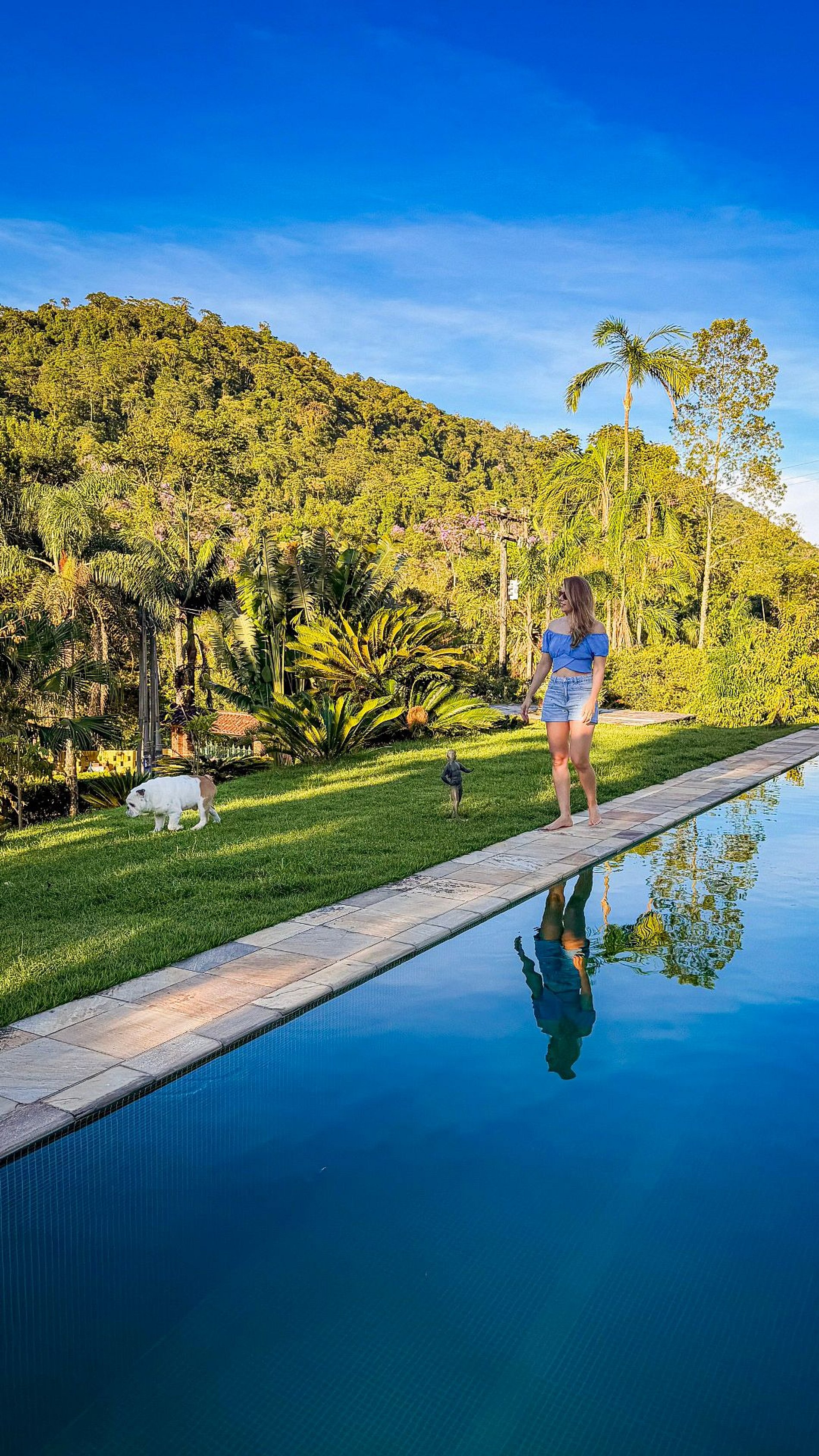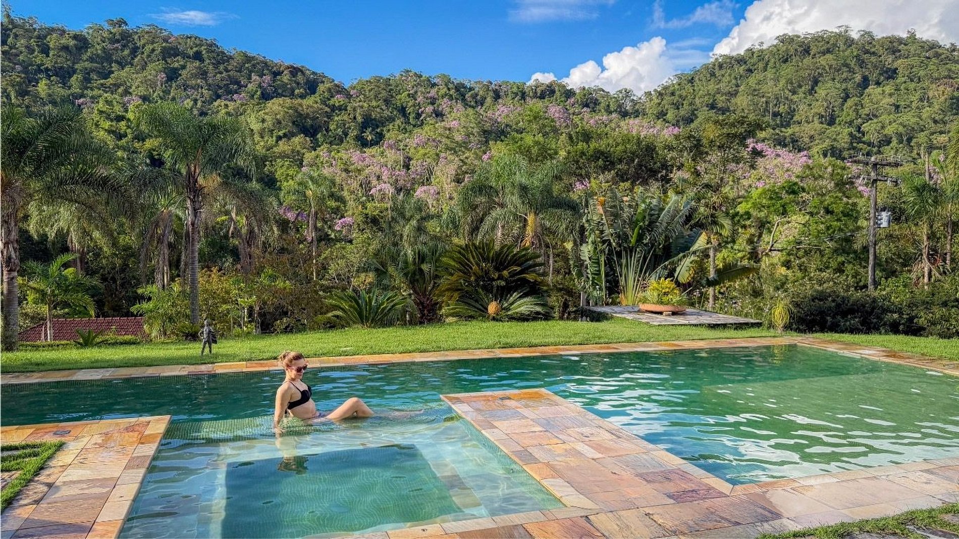 A área externa conta com lago, trilhas, pomar e espaços de contemplação, além de piscina com jacuzzi, sauna e ofurô. Os chalés privativos oferecem conforto e intimidade, sendo ideais para casais ou pequenas famílias que buscam descanso em meio à natureza a poucas horas de São Paulo.
